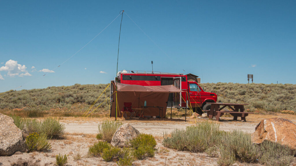 We set up camp along the north edge of Soda Lake Wildlife Habitat Management Area (WHMA) — an easy drive on gravel roads just a few miles north of Pinedale. The area is open, remote, and beautifully quiet on HF. No power lines, no RFI, just a pure noise floor waiting to be filled with signals.